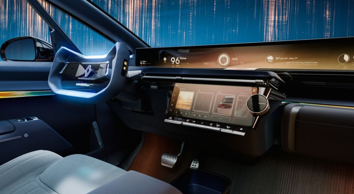 Zaujímavosťou je aj netradičný tvar volantu. Ten naznačuje, že Renault uvažuje o technológii riadenia po drôte. V praxi by to znamenalo elektronické prepojenie volantu s riadením bez mechanickej väzby.