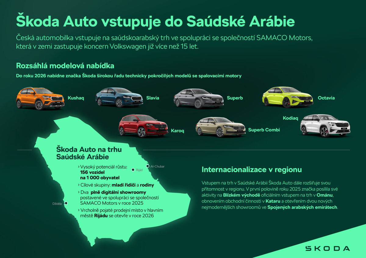 Ponuka pre Saudskú Arábiu zahŕňa známe modely Octavia, Superb, Superb Combi, Karoq a Kodiaq. Doplnia ich indické modely Kushaq a Slavia určené pre trhy s vysokým dopytom po dostupných, jednoduchých a praktických vozidlách.